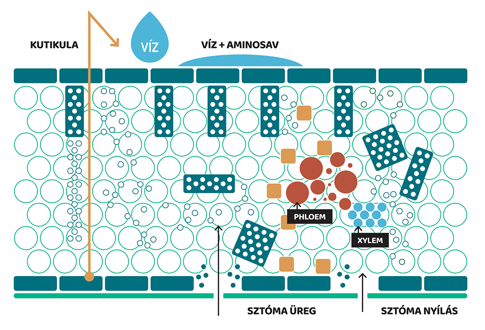 Aszályos évjáratban vízfelvételi problémák miatt pedig különösen megnő a lombon keresztüli növénytáplálás jelentősége!